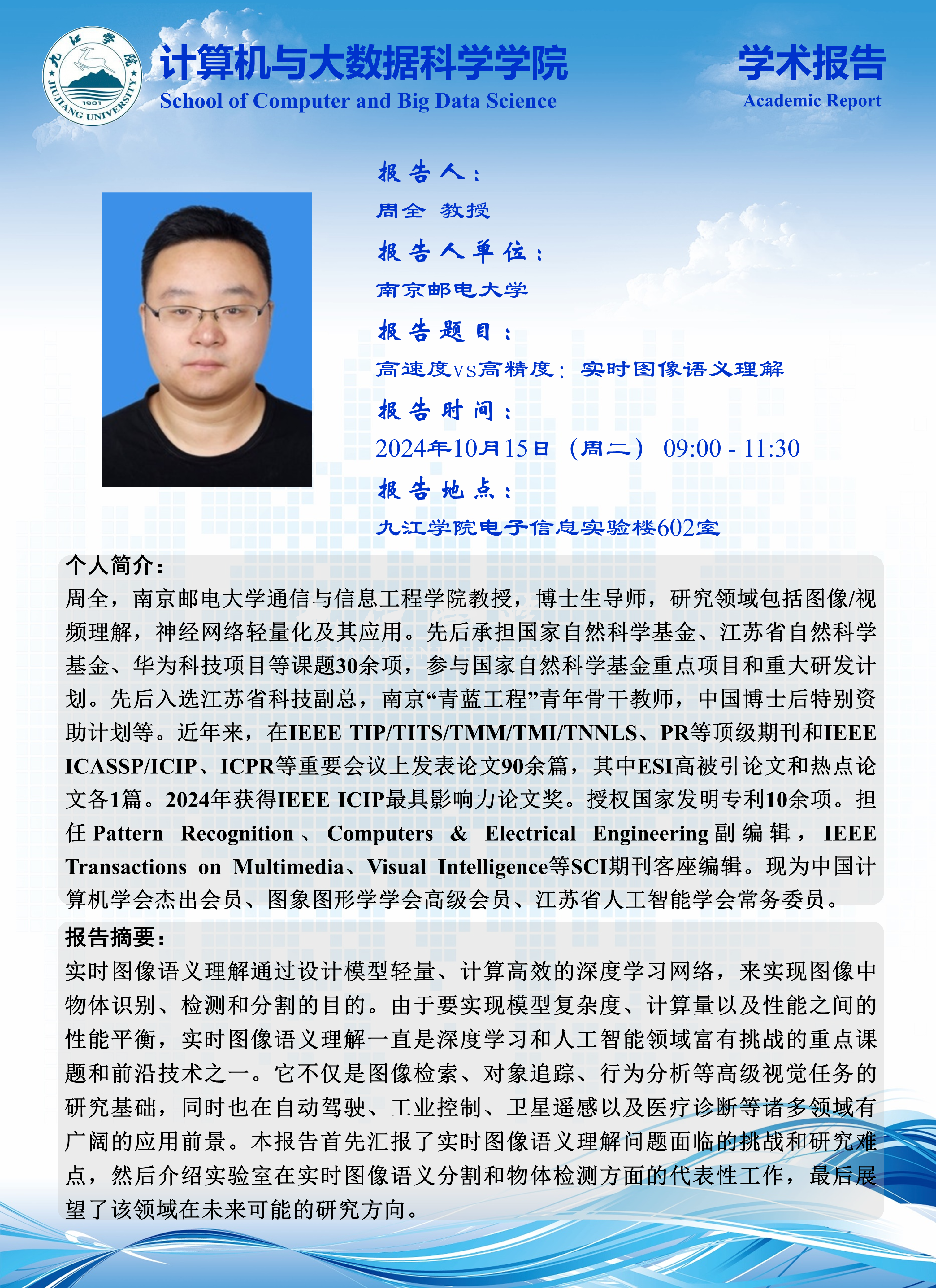 2024年10月15日学术报告(周全, 教授,南京邮电大学)
