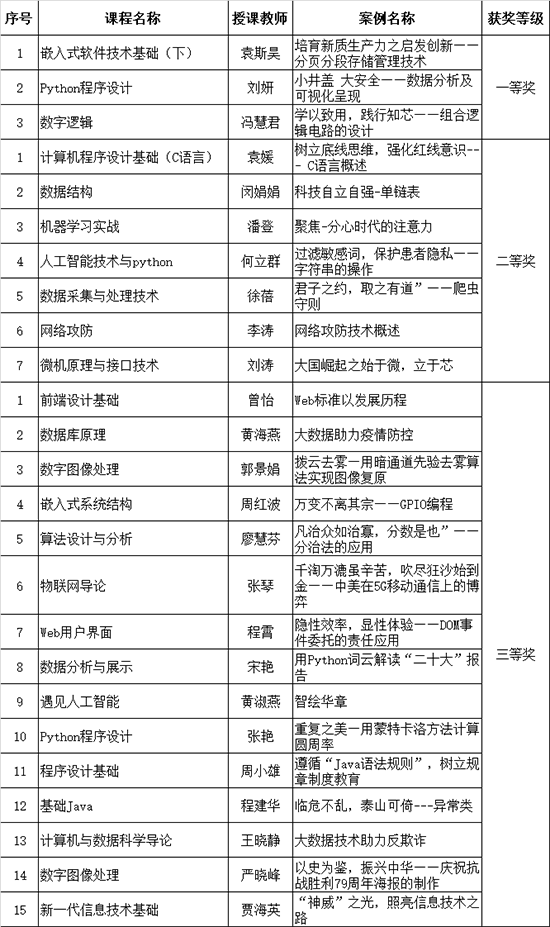 为贯彻落实教育部《高等学校课程思政建设指导纲要》(教高〔2020〕3号)和《九江学院深化课程思政建设与改革实施方案》(九院字〔2023〕122号),进一步推进我校课程思政工作,促进专业课程与思想政治理论课同向同行,强化课程育人导向,积极推进课程思政教学创新,beat365在线唯一官网在全院开展课程思政优秀教学案例评选活动,经过专家评审和意识形态审核,现将评选结果公示下: