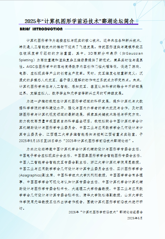 2025年“计算机图形学前沿技术”鄱湖论坛