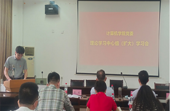 5月18日下午,计算机学院在文友楼424会议室召开党委理论学习中心组(扩大)学习会,专题学习习近平总书记关于教育的重要论述。马克思主义学院黄群副教授受邀作专题辅导报告,学院党委理论学习中心组成员、各科室负责人、各党支部书记参加了会议,理学院、电子信息工程学院、材料科学与工程学院、建筑工程与规划学院四个兄弟学院的组织员列席旁听。会议由党委书记袁宜如同志主持。