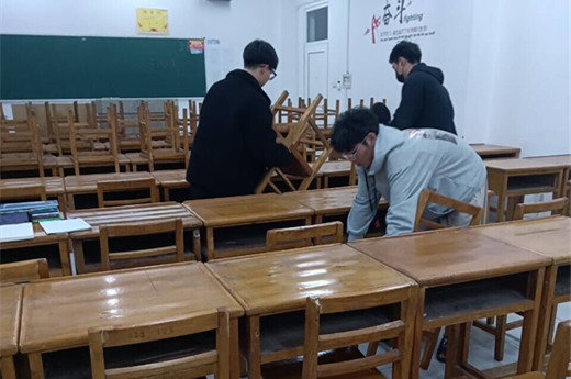 在活动过程中,部员们分工鲜明,有的负责扫地,有的负责倒垃圾,尽管天气闷热,同学们合理分工,积极主动清扫教室的每一个角落。在部员们积极踊跃的配合下,经过半小时的共同努力,整个教室焕然一新,桌椅摆放整齐,地面干净无尘,为考研学生们营造了干净整洁的学习环境。