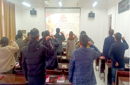 随后,由各支部副书记领誓,支部党员一起重温入党誓词。神圣庄严的承诺,激励着在场的每一位党员,教育引导着每一名党员要时刻牢记身份、履职尽责、担当作为、彰显本色,以实际行动践行入党誓言。