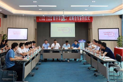 beat365在线唯一官网副院长彭虎在致辞中谈到,计算机学院按照学校部署和要求,全力服务九江地方经济高质量发展和九江制造业数字化转型,学院将发挥计算机学科和人才优势,全力推进数字孪生工厂战略项目合作落地、生根、发芽,深化产教融合和协同创新,共促校企合作新发展。