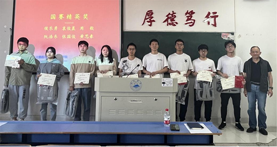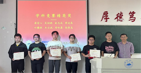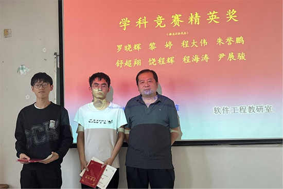随后,邓院长给二0二三年专业竞赛获得国赛奖励的12名同学颁发了奖状和奖品。软件工程教研室王超主任、代君教授、魏启明、梅茁林老师分别给获得省赛奖励的33名同学颁发了奖状。