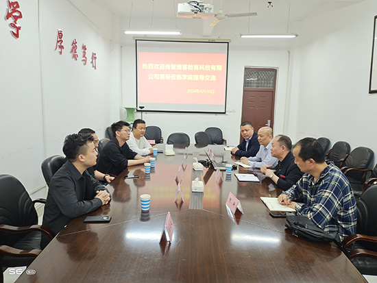 2024年4月16日,江苏传智播客教育科技股份有限公司教育集团总裁刘凡等一行4人来学院指导交流,beat365在线唯一官网院长邓安远,副院长董西伟,相关科室负责人参加交流会。