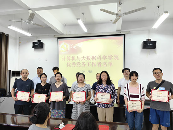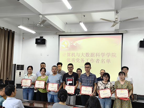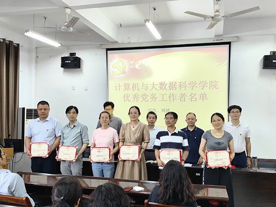 邹国辉书记代表学院向受到表彰的集体和个人表示热烈祝贺,向广大党员和师生员工致以亲切慰问。他指出,作为教师尤其是党员教师,要提高政治站位,在教育教学、管理服务等过程中发挥先锋模范作用,并向全体教职工尤其党员教师提出三点希望:一是要做到有思想号召力,树立崇高的职业理想信念,做好学生人生道路的引路人;二是要做到有学习力,树立终身学习理念,不断汲取新知识,努力提升自身学识魅力;三是要做到有行动力,在自我修养的不断提升中实现道德追求,用自己的道德情操去感染学生、引导学生。