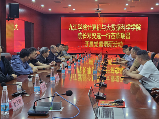 活动伊始,双方在瑞昌市水利局会议室举行党建工作交流会。会上,计算机学院院长邓安远详细介绍了学院基本情况,院党委书记邹国辉介绍了学院“党建+学科建设”“党建+人才培养”的特色模式,分享了将党建工作深度融入教学科研、学生实践的创新举措。市水利局党组书记、局长周佐强则围绕水利行业党建与业务融合发展,讲述了在防汛抗旱、水资源保护等重点工作中,党员干部冲锋在前、发挥先锋模范作用的典型案例。双方还就党员教育管理、党建品牌创建、主题党日活动开展等内容展开热烈讨论,在思维碰撞中拓宽党建工作新思路。