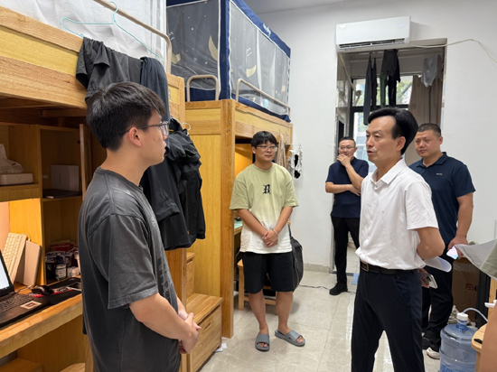 吴维勇副校长走进每个宿舍,与留校研究生面对面交谈,从宿舍的居住环境到日常的饮食起居,从课程学习的进度到科研项目的进展,详细询问研究生们的学习、生活情况。在交流过程中,他鼓励研究生们要合理规划时间,充分利用暑期这段宝贵的时光,提升自己的科研能力和学术水平;他强调要加强与导师联系,及时沟通学习中遇到的问题,在导师的指导下提高学习效率;同时他也提醒同学们要注意劳逸结合,保持身心健康,以饱满的精神状态投入到学习和科研中。考虑到近期高温天气,吴维勇副校长特别叮嘱同学们要增强安全防范意识,在做好防暑降温工作同时,也要注意用电安全、消防安全等,确保自身安全。