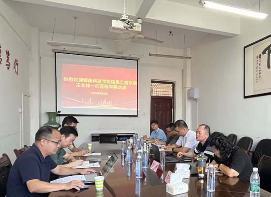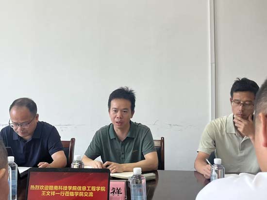 8月5日上午,赣南科技学院信息工程学院电子信息工程教研室主任王文祥、数据科学与大数据技术教研室主任杨海锋、网络空间安全教研室主任李观发等一行到访我院,就学科建设、人才培养、科研创新等方面开展交流。我院院长邓安远、副院长董西伟、相关科室及电子信息工程学院电信专业负责人等热情接待了王文祥一行。
