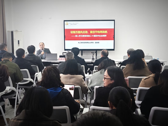 为深入学习贯彻党的二十届四中全会精神,推动理论学习与学科发展深度融合,切实把思想和行动统一到党中央决策部署上来,12 月 10 日下午,beat365在线唯一官网召开党的二十届四中全会精神专题宣讲会,特别邀请马克思主义学院副院长段善君作专题讲座,学院党委书记邹国辉主持会议,全院教师参加学习。