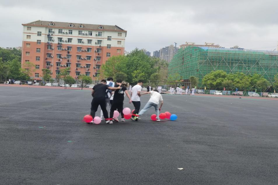此次活动分为背夹球、萝卜蹲、六人七足、踢毽子和踩气球个项目。同学们积极参与其中,活动现场热火朝天,欢声笑语不断。各组为了取胜各神通,比如在六人七足比赛中六组由于无法在短时间内让大家很好的协调,最后全组采用跳跃的方式完成了比赛。无论是参赛人员或是裁判最后都打成一片。大家不分团队,共同欢乐,活动结束同学们细心的打扫了赛场周边环境,保证校园环境卫生的干净。