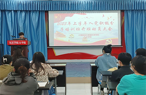 会上,文学院余蓓老师结合党的二十大精神发表了讲话,从本次培训班的思想基础和目标为落点,向大家提出了几点要求:一要树立正确的入党动机,要有为共产主义和中国特色社会主义事业奋斗终生的坚定信念;二要有具有奉献精神,树立全心全意为人民服务的思想;三要严格要求自己,在学习、生活等各方面起到先锋模范作用;四要自觉接受组织的培养、教育和考察,积极主动配合支部活动开展;五要切实践行“两学一做”,增强党性修养,提升自身能力。