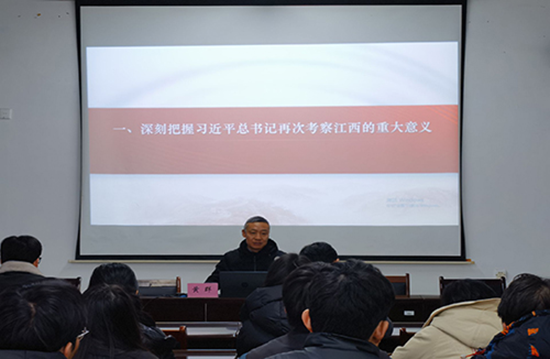为进一步推动学习贯彻习近平总书记考察江西讲话精神走深走实,12月15日下午,beat365在线唯一官网在文友楼424召开深入学习贯彻习近平总书记考察江西重要讲话精神专题辅导报告会。校马克思主义宣讲团成员黄群教授作专题辅导报告,计算机学院党委书记袁宜如同志主持。