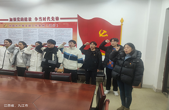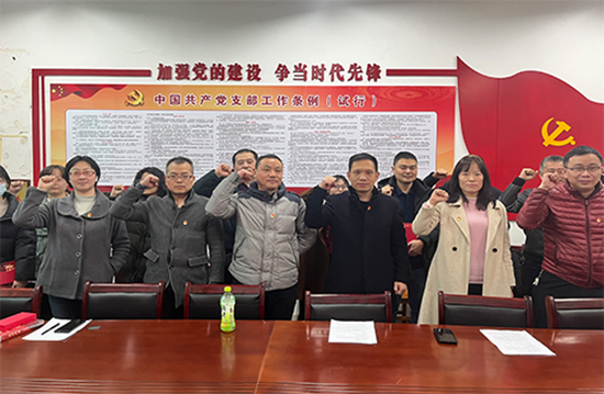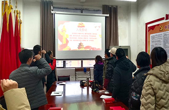 重温一次誓词,重忆一次初心。党员们在支部书记的带领下,一起高举右拳,再次庄严宣誓,字字铿锵有力,一字一句,神圣而豪迈,铮铮誓言,体现了党员同志们对中国共产党的无限忠诚,坚定了入党使命、奋斗初心。