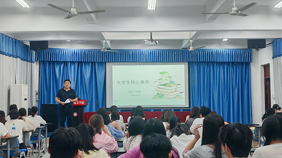 党课伊始,杨思迪围绕“新时代大学生的核心素养”展开论述。他强调,大学生不仅要具备扎实的专业知识,更应在文化传承、价值塑造、社会责任等方面有所作为,培养全面发展的核心素养,以适应时代发展需求,为成为合格的社会主义建设者和接班人筑牢根基。