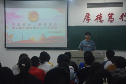 为深入学习宣传贯彻党的二十大精神,用党的科学理论武装青年,用党的初心使命感召青年。4月12日晚,计算机学院在文友楼515开展“学习二十大,永远跟党走,奋进新征”主题团日活动。此次活动由团委组织部组织,全体骨干培训班成员参加。