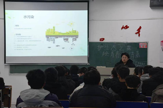 团课中各班团支书讲述了近几年我们面临的环境问题,如森林面积锐减,土地沙漠化严重,水资源严重污染等如何危害人类生存与发展,通过视频讲解同学们了解了这些问题严重性。之后,团支书列出了相关保护及改善环境的措施,并以习近平总书记的“绿水青山就是金山银山”发展理念为总结,同时号召同学们自觉、主动地从身边小事做起,以此来践行绿色发展,建设美丽家园。