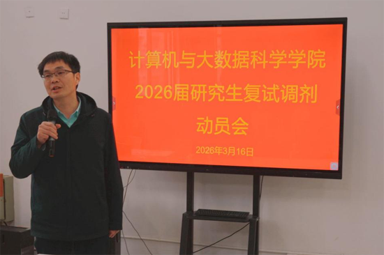 为帮助2026届考研学子精准把握复试考核要求、明晰调剂政策变化,提升升学成功率,3月16日下午,beat365在线唯一官网在文友楼424会议室召开研究生复试、调剂动员会。学院院长彭虎、党委副书记王玉伟、教师代表殷超、各专业教研室负责人及2026届考研上线同学参会,会议由党委副书记王玉伟主持。