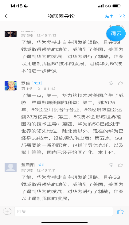图2学生课堂讨论结果截图