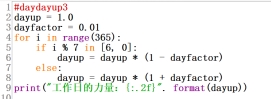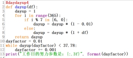 def保留字用于定义函数,这段代码可共用根据函数df参数计算工作日力量的函数,参数不同计算结果不同。while保留字判断条件是否成立,条件成立时循环执行。