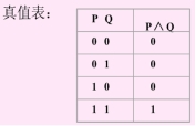 介绍合取联结词,重点说明合取两端的命题同时为真的时间合取的结果才为真。