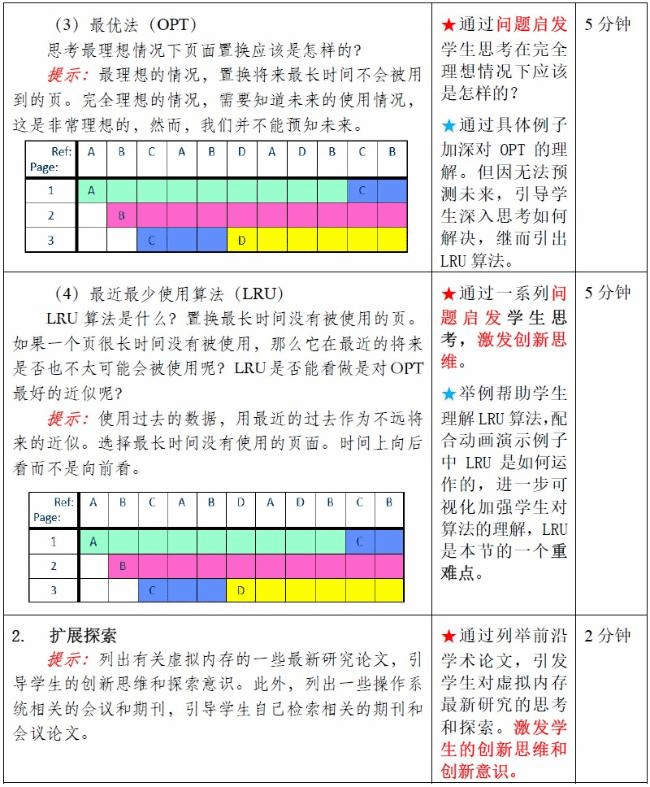 1.知识目标:掌握解决操作系统缺页中断的页面置换算法的思路和原理。