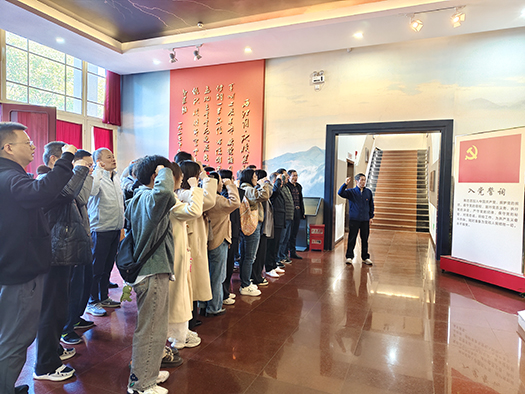 “我志愿加入中国共产党……随时准备为党和人民牺牲一切,永不叛党。”面对鲜红的党旗,在院党委书记邹国辉带领下,党员们郑重举起右手,重温入党誓词,坚定理想信念,铿锵有力的誓言在秋收起义修水纪念馆内久久回响,铭记庄严承诺,牢记共产党员的政治责任、工作担当和光荣使命。