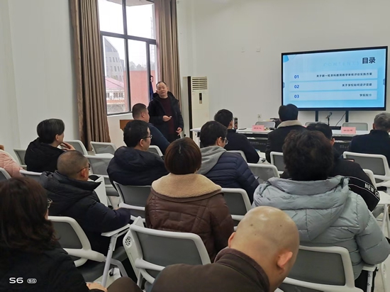 培训会上,院长邓安远围绕新一轮本科教育教学审核评估的核心内涵及实施方案、评估指标、“四个回归”、“十六字”方针、“两类四种”方案、OBE教育理念等进行了详细解读,并对校史校情、院史院情、学院办学目标、立德树人落实机制、学院建设成效等应知应会内容进行了具体讲解。他强调,本科教育教学审核评估是对学院办学水平和教学质量的一次全面检验,全体师生要高度重视,以评估为契机,推动学院教育教学工作再上新台阶。他要求全体师生认真学习审核评估应知应会知识,明确自身责任,积极配合评估工作,形成“人人关心评估、人人了解评估、人人参与评估”的积极氛围,展现学院良好风貌。